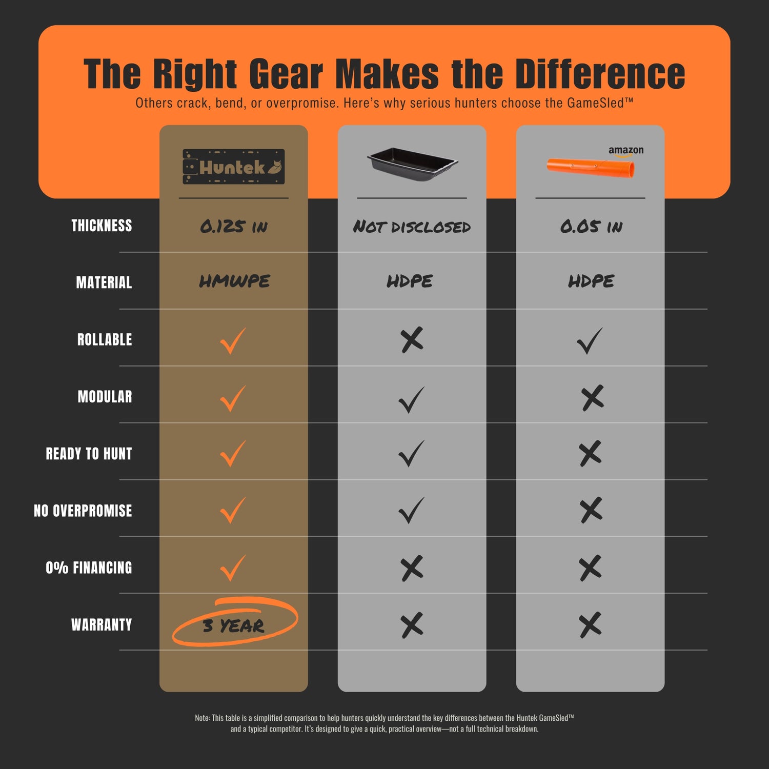 Crafted from 1/8" HMW plastic, the GameSled shrugs off wear—built for real-world terrain, season after season.
